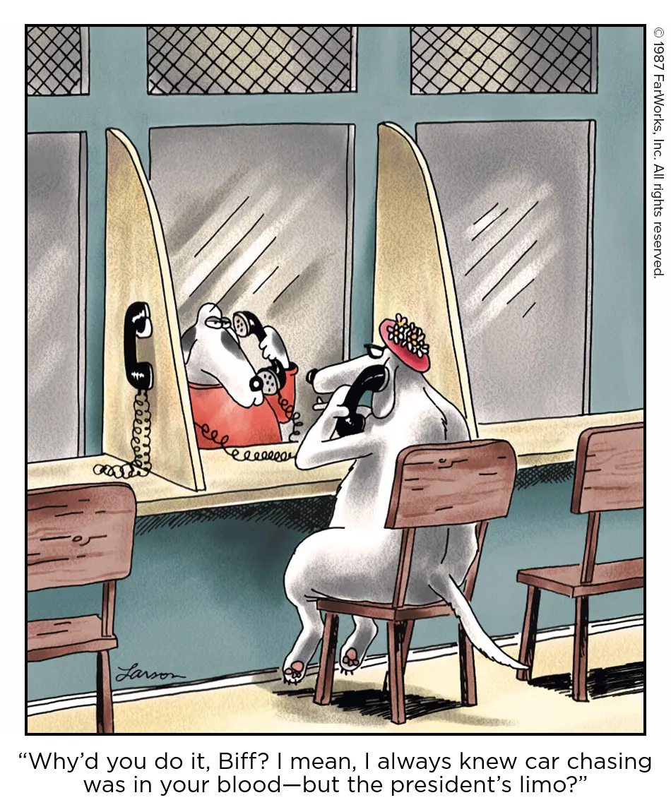 “Why’d you do it, Biff? I mean, I always knew car chasing was in your blood—but the president’s limo?”