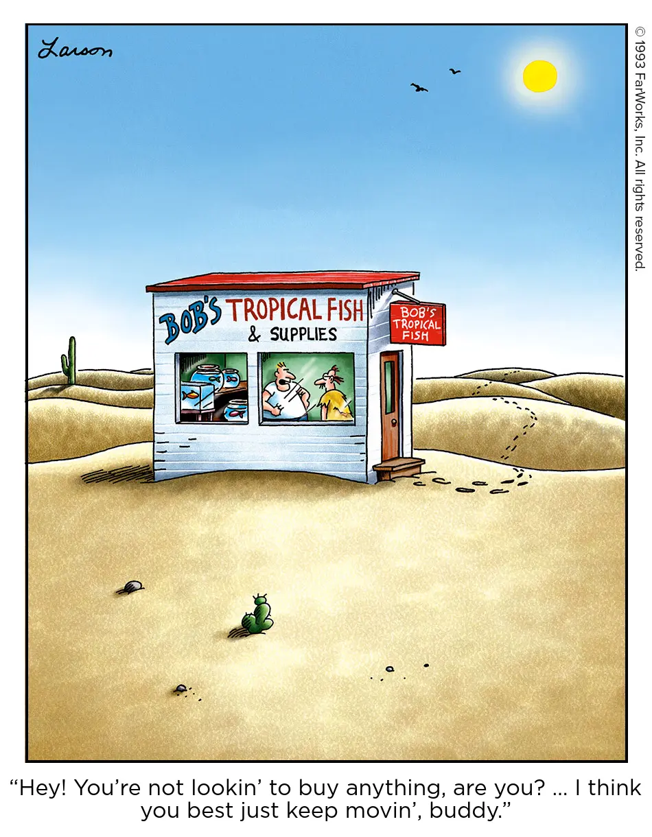 “Hey! You’re not lookin’ to buy anything, are you? … I think you best just keep movin’, buddy.”