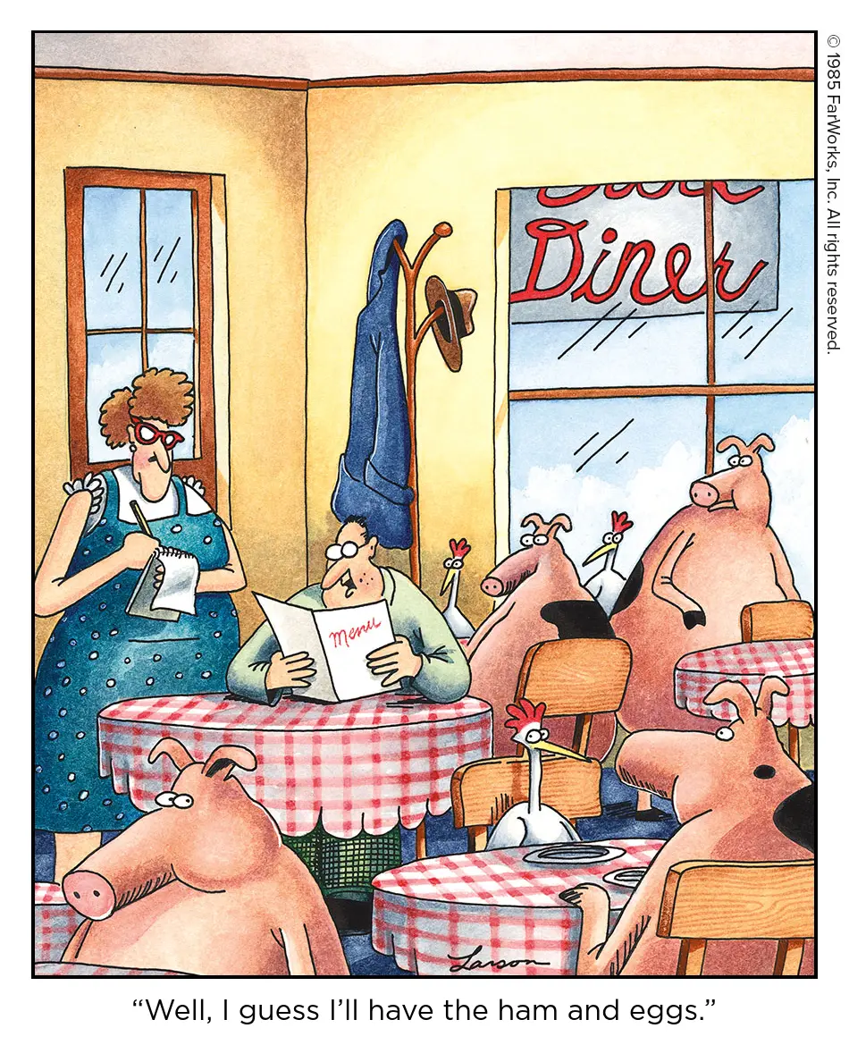 “Well, I guess I’ll have the ham and eggs.”