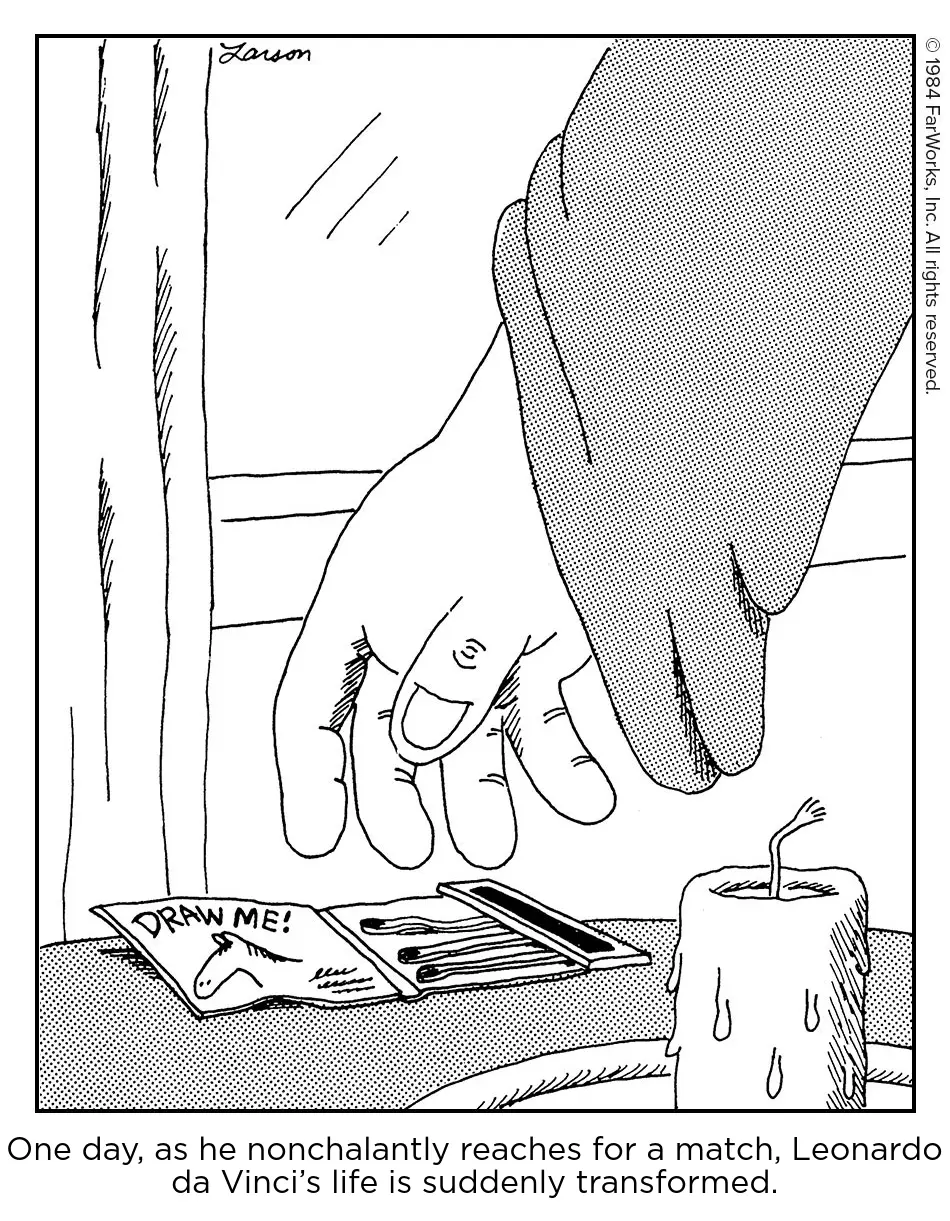 The modern match (lit by friction like the matches depicted in the comic) was invented about 300 years after da Vinci died