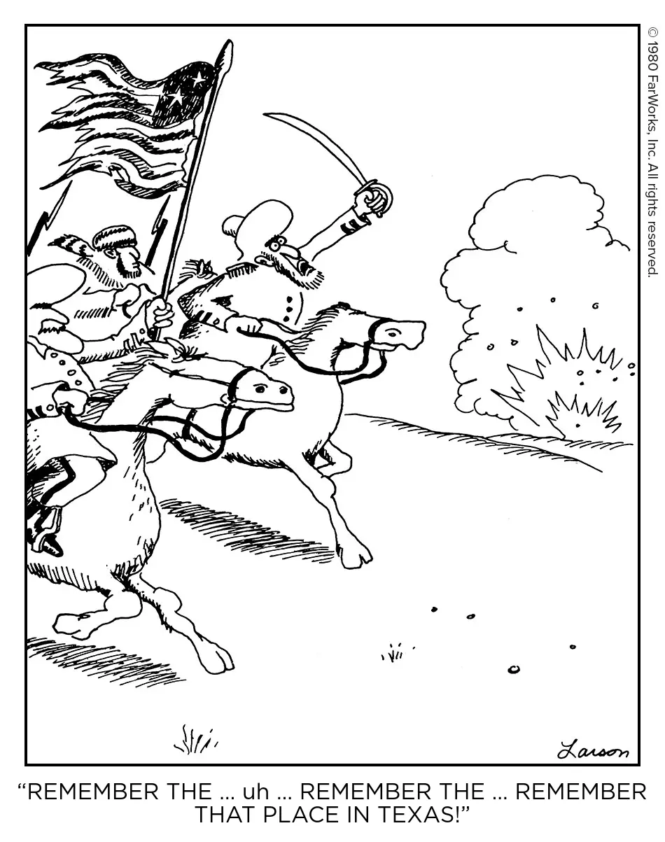 The Alamo. It’s a fort in San Antonio, Texas that was under siege by the Mexican army and the troops inside held out for several days. The rallying cry was, “Remember the Alamo.”