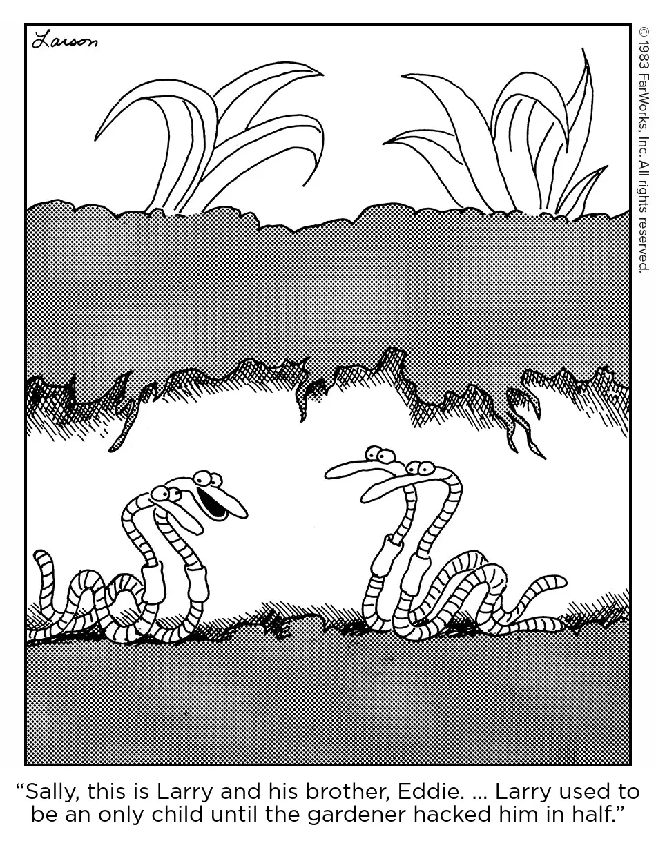 Not that I imagine Larson was especially concerned about strict details, but maybe he was thinking of planarians. For example, the invasive hammerhead worm is definitely not something you want to go hacking up…