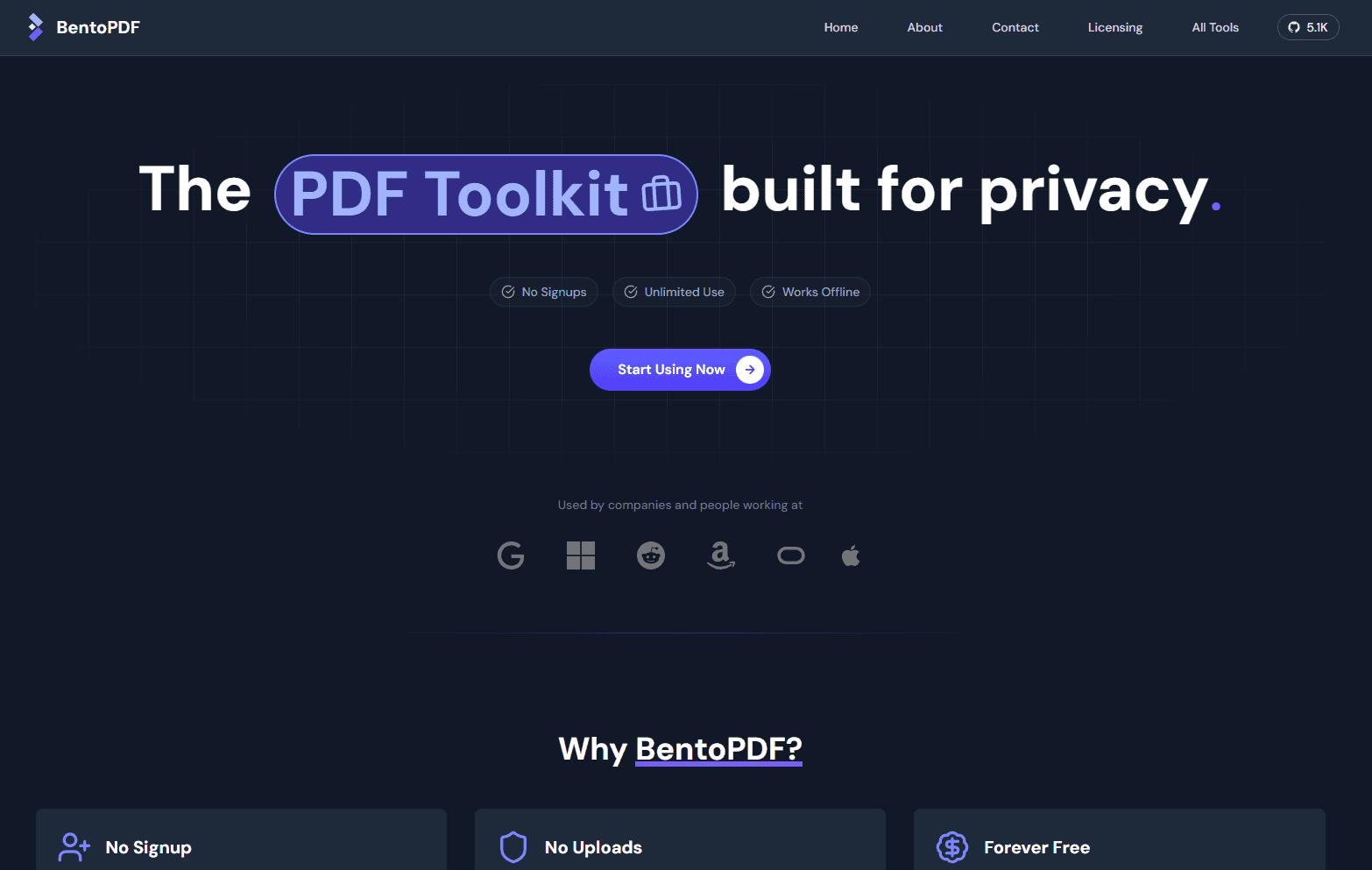 This is built for privacy. Not sending any data to server. https://www.trustpdf.net/