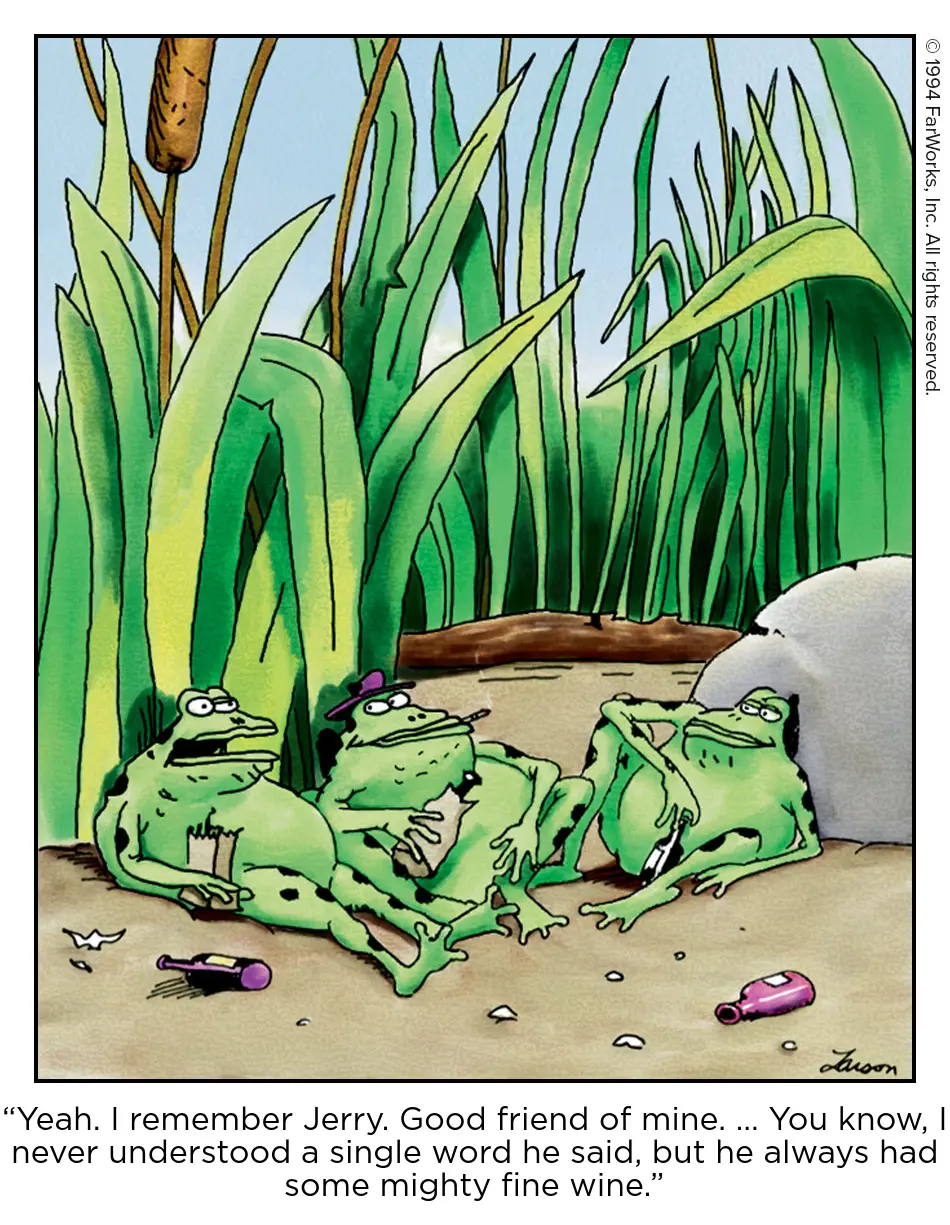 “Yeah. I remember Jerry. Good friend of mine. … You know, I never understood a single word he said, but he always had some mighty fine wine.”