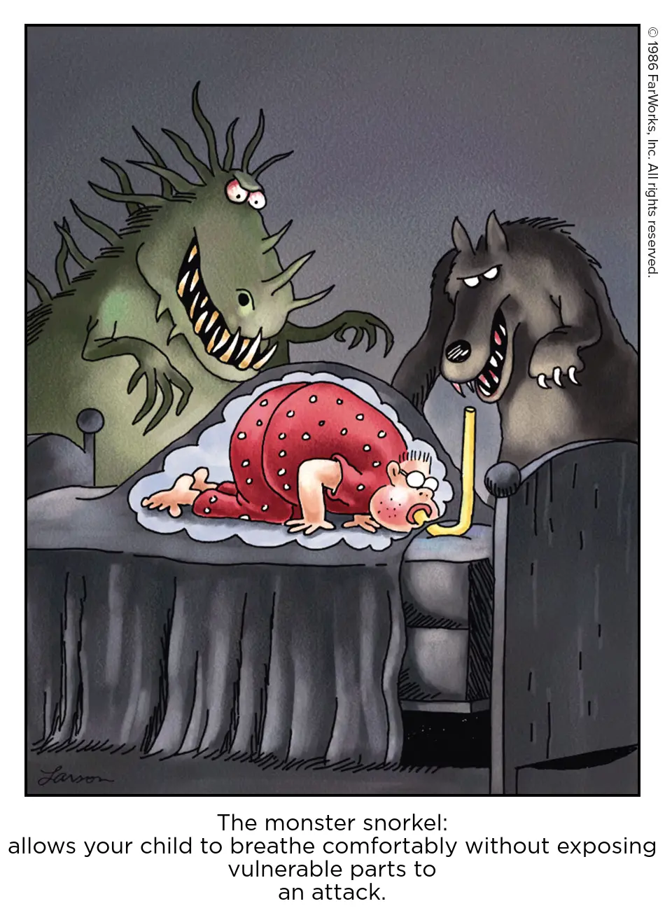 The monster snorkel: allows your child to breathe comfortably without exposing vulnerable parts to an attack.