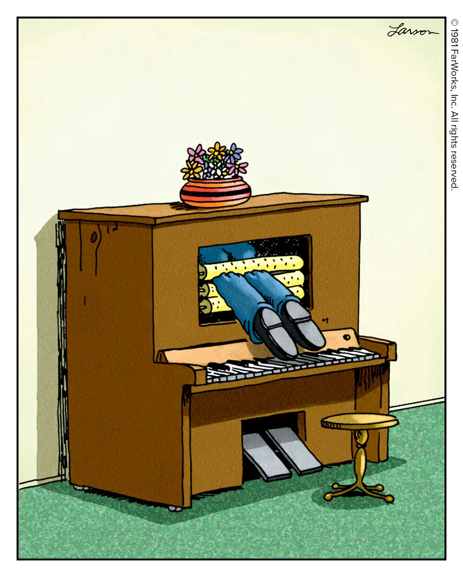The keys shift and split and widen into a maw as they sharpen into yellowed and blackened teeth. The sound that follows is a combination of squelching flesh, a brief and suddenly silenced scream, and a piano with all the keys struck at once with great force. The piano roll starts out slow, muffled, like something is stuck between the mallets and strings. Then clearer and speeding towards its regular tempo, the only sign anything happened is the notes on the scroll look freshly printed with blood but that soon dries and darkens to black.