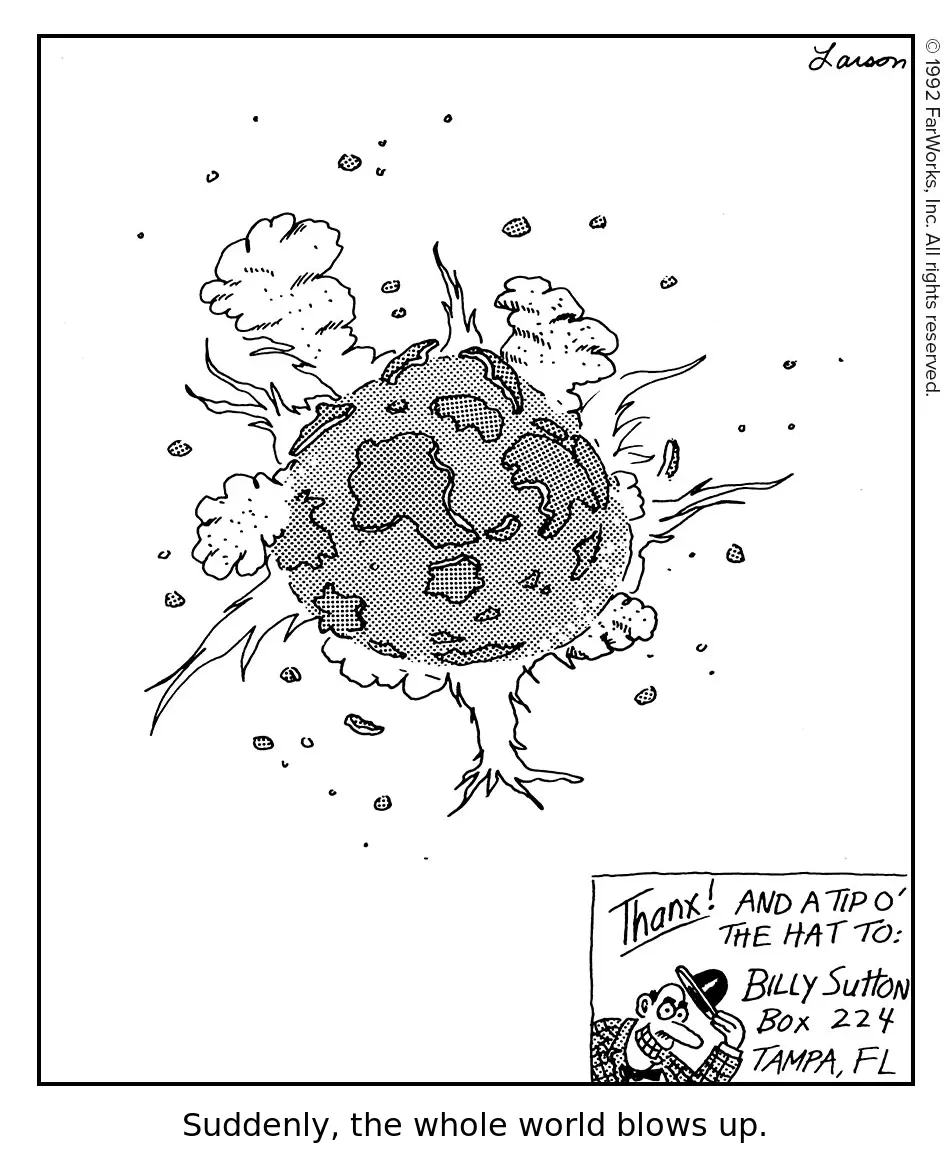 🔗 Caption: Suddenly, the whole world blows up. Alt text: Thanx! AND A TIP O’ THE HAT TO: BILLY SUTTON BOX 224 TAMPA, FL Disqus comments Archived Page