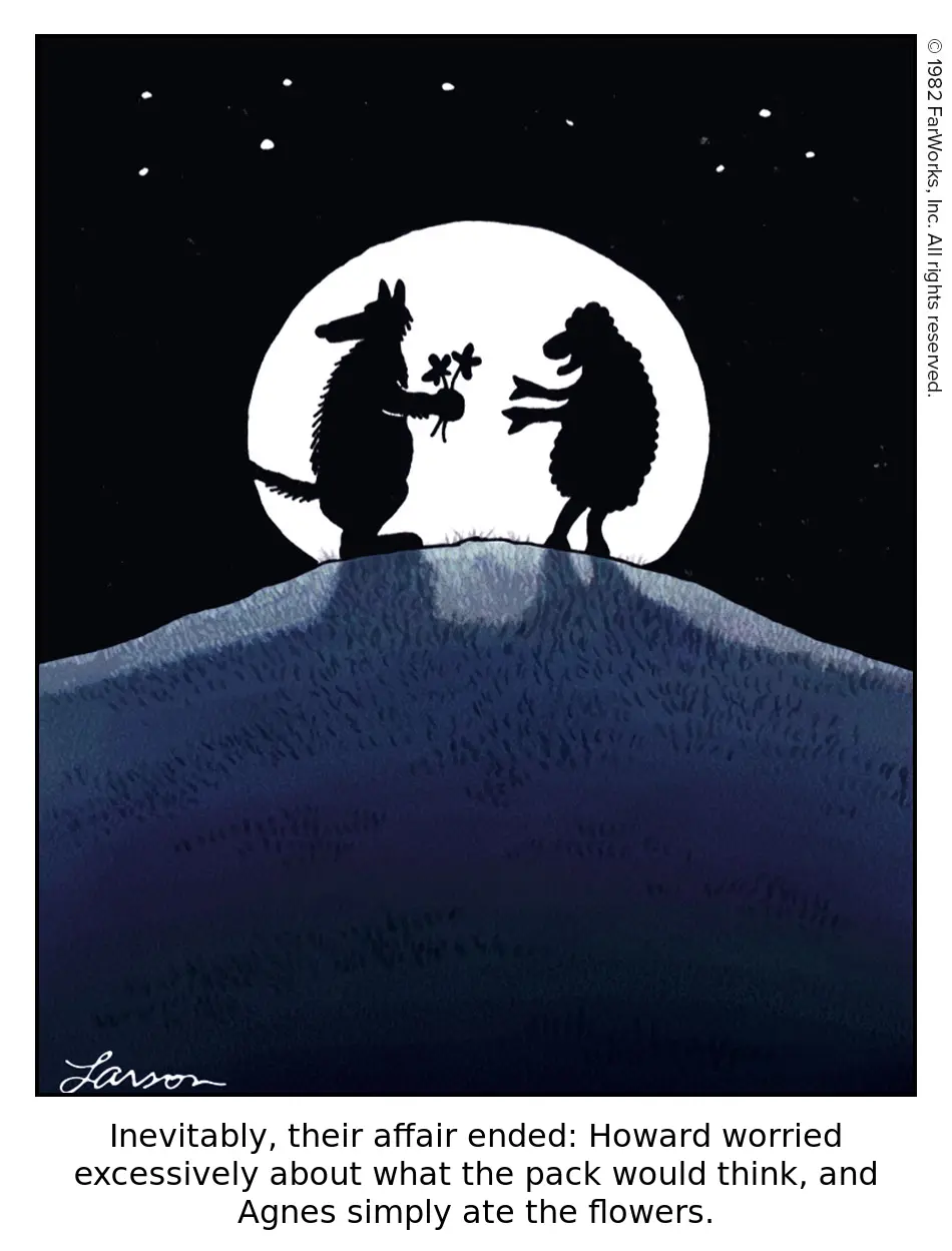 Inevitably, their affair ended: Howard worried excessively about what the pack would think, and Agnes simply ate the flowers.