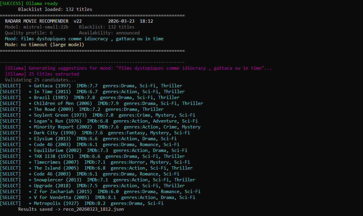 I just pushed v22 of my project : a local AI companion for Radarr, that goes beyond generic genre or TMDb lists.