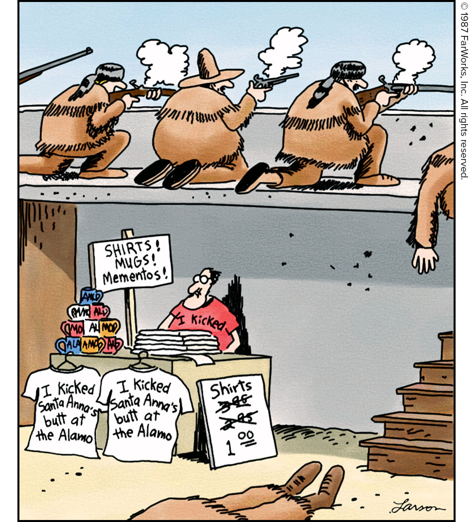 SHIRTS! MUGS! Mementos! / I kicked Santa Anna’s butt at the Alamo / I kicked Santa Anna’s butt at the Alamo / Shirts 3.95 2.95 1.00