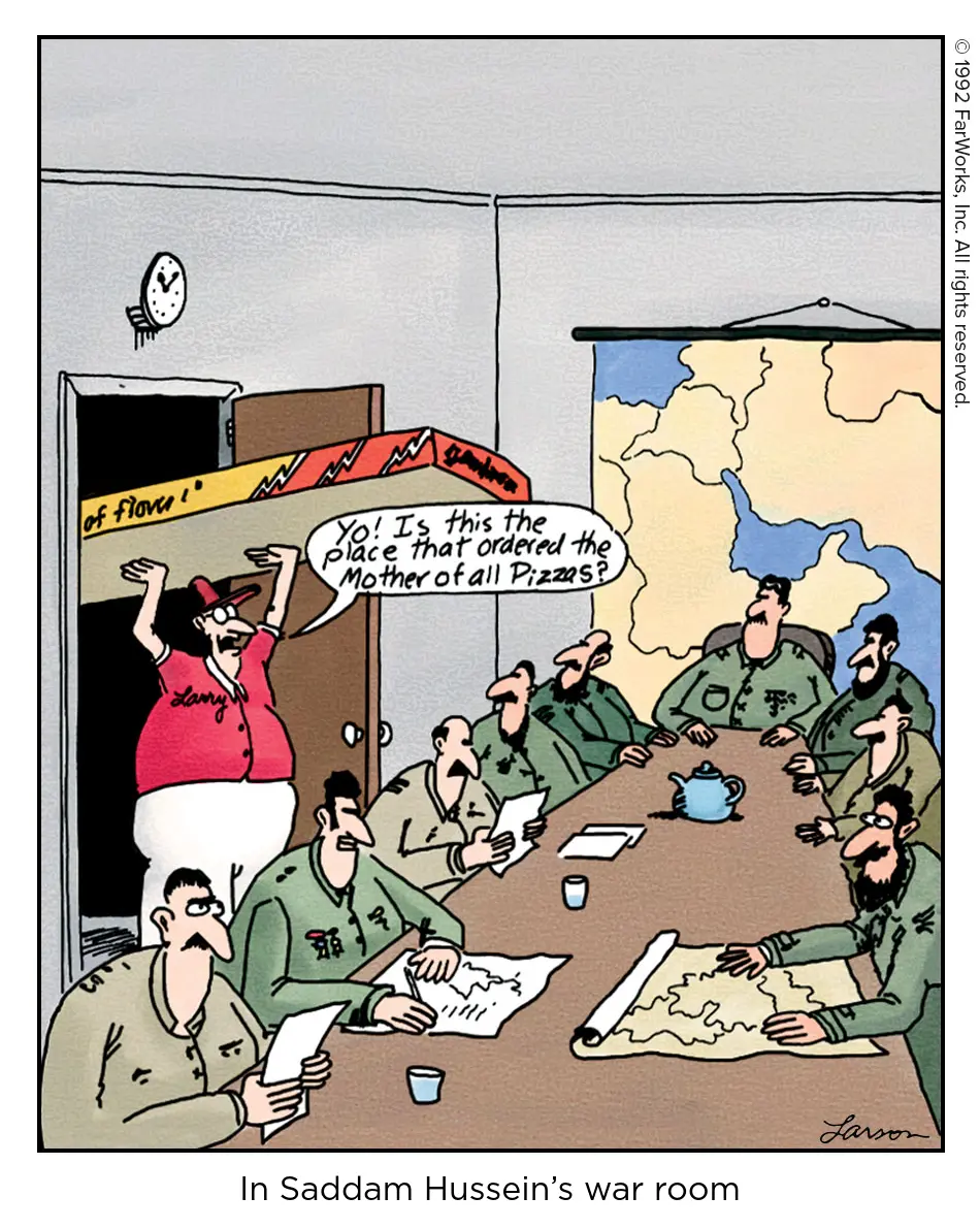 🔗 Caption: In Saddam Hussein’s war room Alt text: Yo! Is this the place that ordered the Mother of all Pizzas? Larry Disqus comments Archived Page