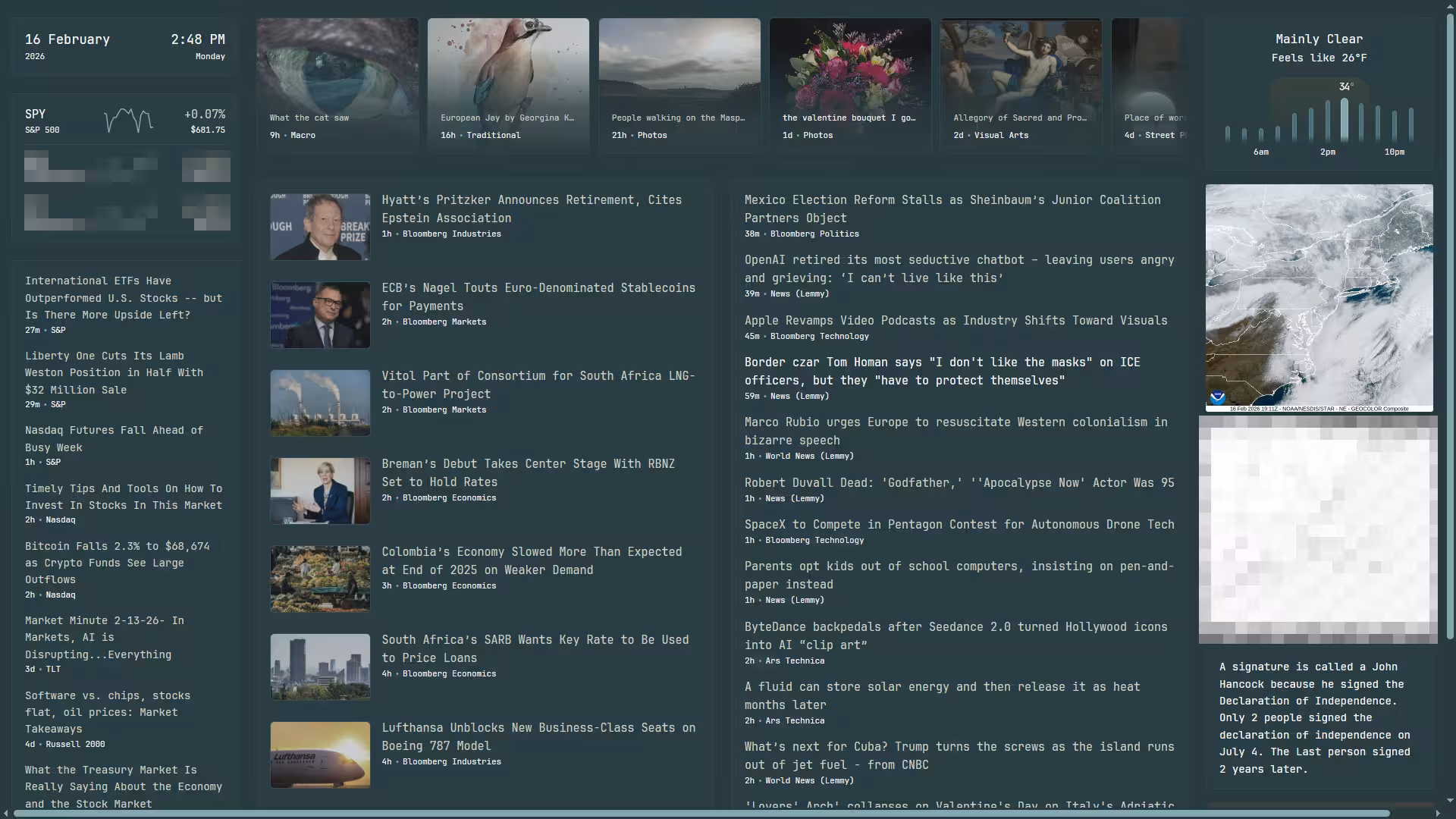 I was aiming for something more akin to those hotel lobby TVs which show useful local info and news on a fixed refresh cycle. This was also common on cable TV years ago: some channels would just show weather and news headlines 24/7 on a fixed cycle with music.